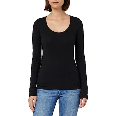 Tommy Hilfiger Women's Long Sleeve Slim Modern T Shirt Basic, Black (Black), L
