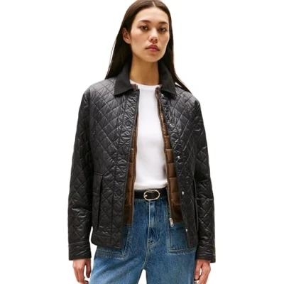 Tommy Hilfiger Women’s Nylon Slim Quilted Jacket with Pointed Collar, Black (Black), S