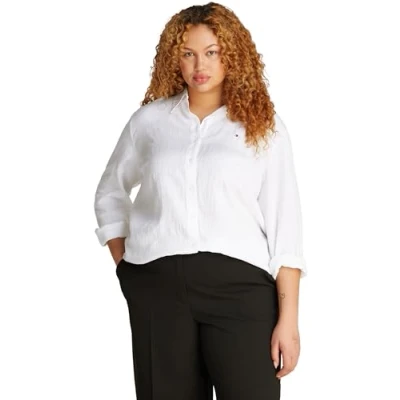 Tommy Hilfiger Women’s Relaxed Fit Linen Shirt, White (Th Optic White), 26