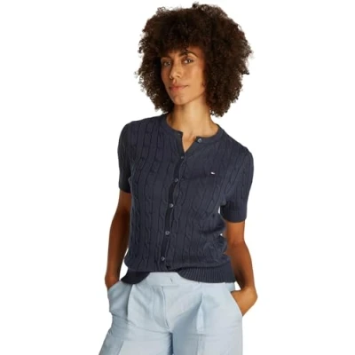 Tommy Hilfiger Women’s Short Sleeve Cable Knit Cardigan, Blue (Dark Night Navy), M
