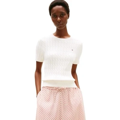 Tommy Hilfiger Women’s Short Sleeve Cable Knit Jumper, White (Ivory Silk), S