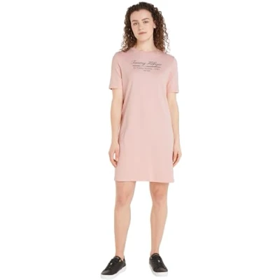 Tommy Hilfiger Women’s Short Sleeve Graphic T Shirt Dress, Pink (Delicate Pink), XL