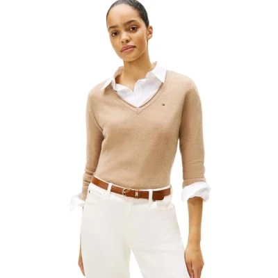Tommy Hilfiger Women’s Soft Wool V Neck Jumper, Beige (Safari Canvas Heather), M