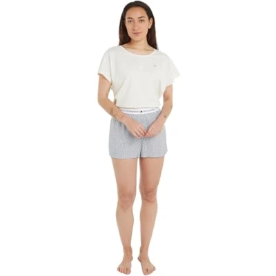 Tommy Hilfiger Women's Ss Pyj Set Woven Uw0uw05226 Pyjamas, Grey (Ivory/Woven Mini Geo), L