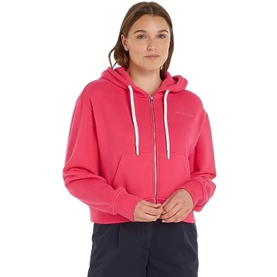 Tommy Hilfiger Women's Sweatshirt Zipper with Hood, Pink (Bright Cerise Pink), XL