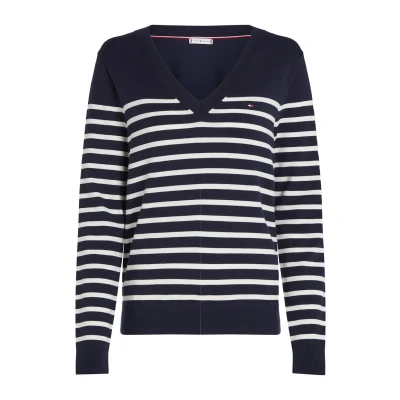 Tommy Hilfiger Women's V Neck Jersey Jumper, Multicolor (Dark Night Navy/Ivory Petal STP), XS