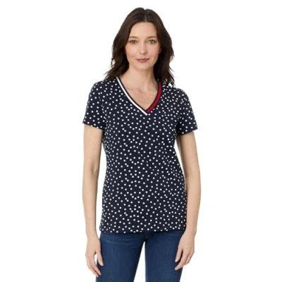 Tommy Hilfiger Women's V Neck Tee, Sky Captain/Bright White, L