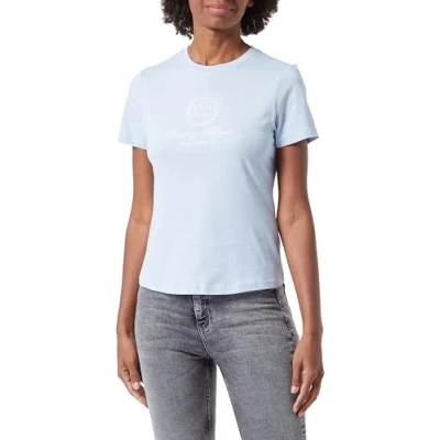 Tommy Hilfiger Women Short Sleeve T Shirt Slim Flag Tee Crew Neck, Blue (Breezy Blue), XL