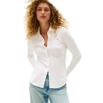 Tommy Hilfiger Women’s 1985 Slim Shirt with Pointed Collar, White (Ecru), L