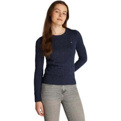 Tommy Hilfiger Women’s Cable Knit Round Neck Cotton Jumper, Blue (Dark Night Navy), 3XL