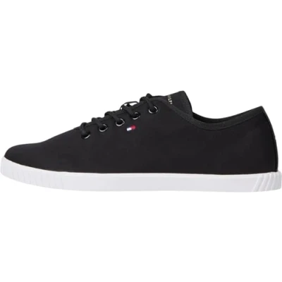 Tommy Hilfiger Women’s Elegant Canvas Lace Up Cupsole Trainers, Black (Black), 6