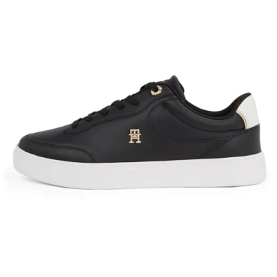 Tommy Hilfiger Women's Essential Chic Leather Court Trainers, Black (Black), 7