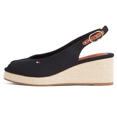 Tommy Hilfiger Women’s Flag Wedge Slingback Espadrilles with Adjustable Straps, Black (Black), 3.5