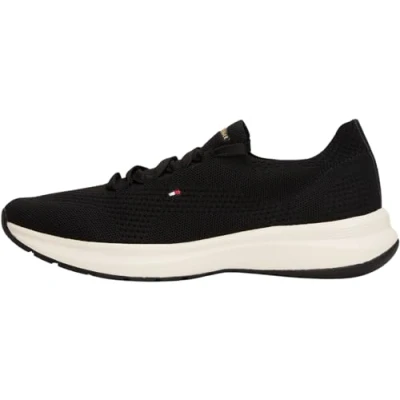 Tommy Hilfiger Women’s Knit Low Top Runner Trainers, Black (Black), 5