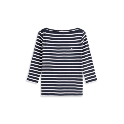 Tommy Hilfiger Women’s Long Sleeve Slim Fit New Cody Top with Boat Neck, Multicolor (Nos Breton Desert Sky/Ecru), XXL
