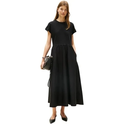 Tommy Hilfiger Women’s Modern Cody Mix Fit & Flare Midi T Shirt Dress, Black (Black), 3XL
