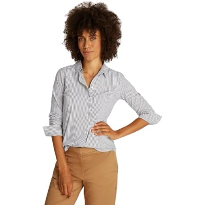 Tommy Hilfiger Women’s Regular Fit Poplin Shirt, Multicolor (Classic Ithaca/Dark Night Navy), 14