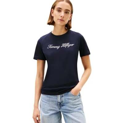 Tommy Hilfiger Women’s Short Sleeve Round Neck Regular Script T Shirt, Blue (Nos Desert Sky), XXL