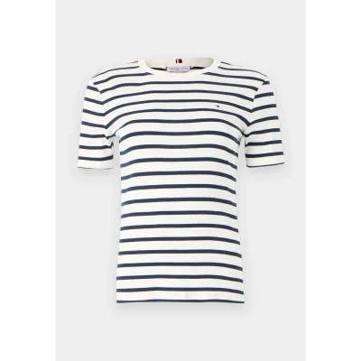 Tommy Hilfiger Women’s Short Sleeve Round Neck Slim Cody T Shirt, Multicolor (Breton/ECU/Dark Night Navy), L