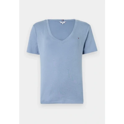 Tommy Hilfiger Women’s Short Sleeve T Shirt New Slim Cody V Neck, Blue (Breezy Blue), XL
