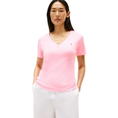 Tommy Hilfiger Women’s Short Sleeve T Shirt New Slim Cody V Neck, Pink (Classic Pink), XXL