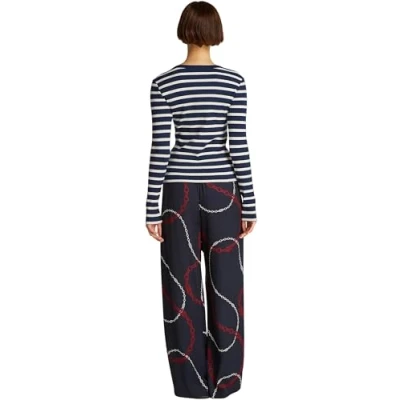 Tommy Hilfiger Women’s Slim Henley Long Sleeve Top with Button Placket, Multicolor (Dark Night Navy/Calico STP), S