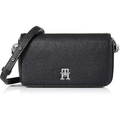 Tommy Hilfiger Women’s Small Emblem Flap Crossbody Bag, Black (Black), One Size