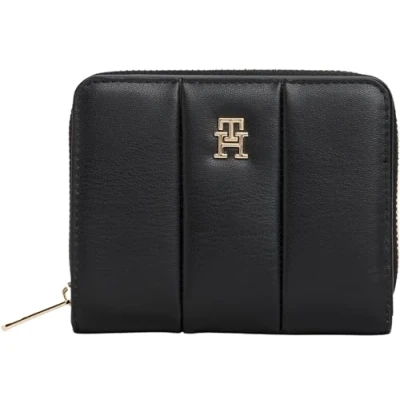 Tommy Hilfiger Women's TH ICON MED ZA Quilted AW0AW17746 Zip Around Wallet, Black (Black), One Size