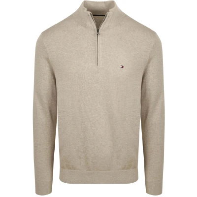 Tommy Hilfiger Half Zip Pullover Essential Greige Tommy Hilfiger Half Zip Pullover Essential Greige in the color Beige and Grey with a fit Regular-Fit is made from Cotton with a Plain design.