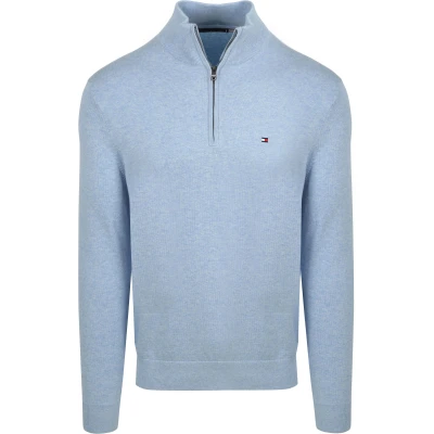 Tommy Hilfiger Half Zip Pullover Essential Light Blue Tommy Hilfiger Half Zip Pullover Essential Light Blue in the color Light blue and Blue with a fit Regular-Fit is made from Cotton with a Plain design.