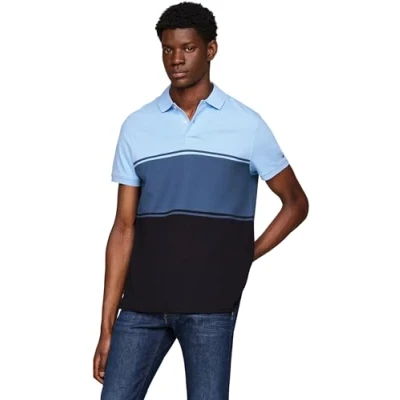 Tommy Hillfiger Men's Short Sleeve Regular Fit Colour Block Polo Shirt, Blue (Aegean Sea), XS