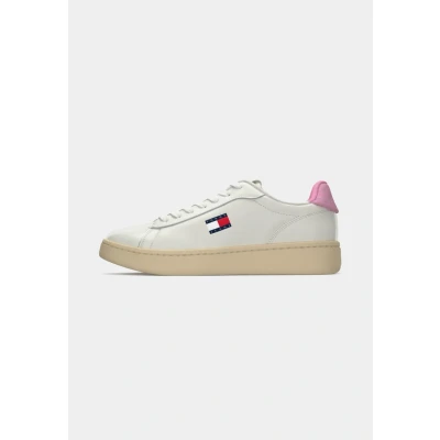 Tommy Jeans Archive Trainers ecru/carnival pink Sale at Zalando UK | Upper material: leather and imitation leather/Lining: textile/Sole: natural rubber/Insole: textile | Sale order at Zalando UK! Size: 4. Color: Ecru/carnival pink. Pattern: plain.