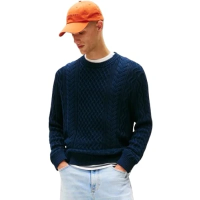 Tommy Jeans Badge Cable KNIT Sweater Jumper, Men's, Size: 36/38, Dark night navy tonal