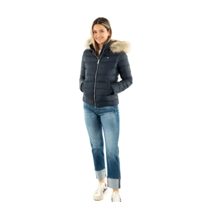 Tommy Jeans Basic Hooded Jacket Down jacket, Women's, Size: 26, Dark night navy