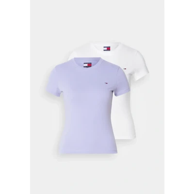 Tommy Jeans C NECK TEE 2 PACK Basic Tshirt, Women's, Size: 14, Ecru/periwinkle dust