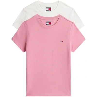 Tommy Jeans C NECK TEE 2 PACK Basic Tshirt, Women's, Size: 4, Ecru/mystic pink