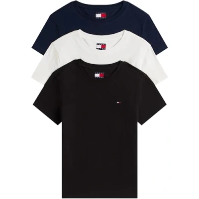 Tommy Jeans C NECK TEE 3 PACK Basic Tshirt, Women's, Size: 4, Black/ecru/gulf sand
