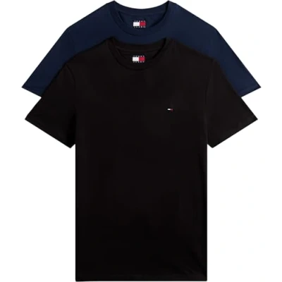Tommy Jeans Men’s 2 Pack Extra Slim Cotton Jersey Short Sleeve T Shirts, Multicolor (Black/Dark Night Navy), XL