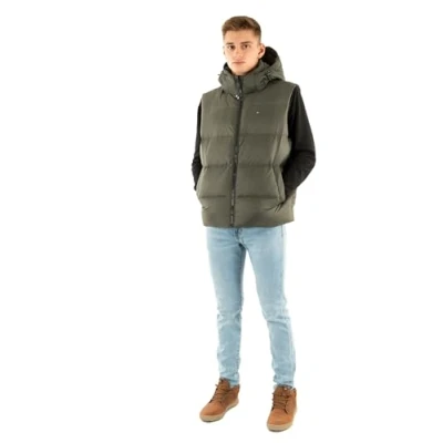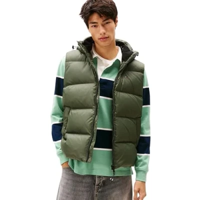 Tommy Jeans Men’s Essential Down Gilet with Hood, Green (Pewter Green), 3XL