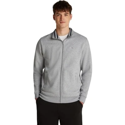 Tommy Jeans Men’s Regular Fit Zipped Fleece, Grey (Grey Htr), XXL