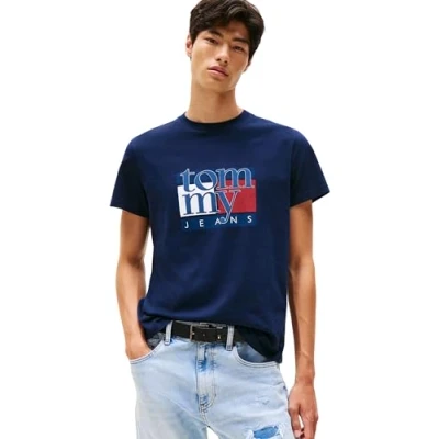 Tommy Jeans Men’s Short Sleeve Round Neck Slim Flag T Shirt, Blue (Dark Night Navy), L