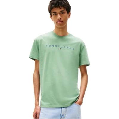 Tommy Jeans Men's TJM Reg Linear Logo Tee Ext Dm0Dm17993 S/S T Shirt, Green (Cloudy Jade Multi), XXL