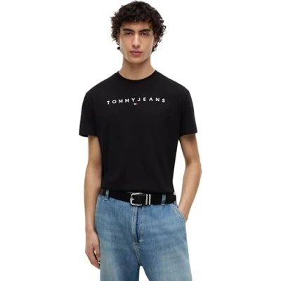 Tommy Jeans Men's TJM Reg Linear Logo Tee Ext Dm0Dm20744 S/S T Shirt, Black (Black), 4XL