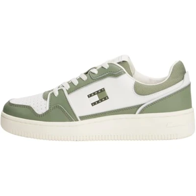 Tommy Jeans Men's TJM Retro Basket EM0EM01610 Low Top, White (Ecru/Aruba Green), 11 UK