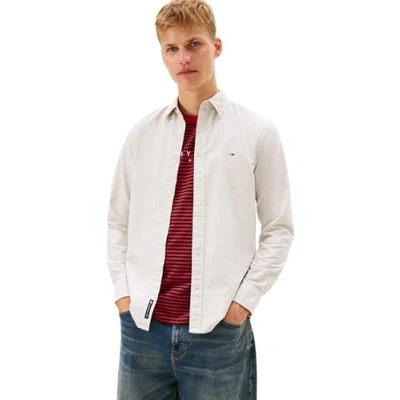 Tommy Jeans Men's TJM Slim Oxford Shirt Ext Dm0Dm20668 L/S, Green (Dark Greenery/Stripes), L