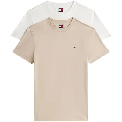 Tommy Jeans Men's TJM Xslim 2Pack Jersey Tee Ext Dm0Dm20687 S/S T Shirt, Multi (Ecru/Gulf Sand), L (Pack of 2)