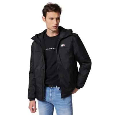Tommy Jeans Men’s Water Repellent Poly Jacket, Black (Black), XS