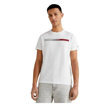 Tommy Jeans Men Short Sleeve T Shirt Essential Flag Tee Crew Neck, White (White), S