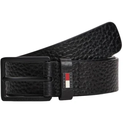 Tommy Jeans Men’s 3.5 cm Elevated Flag Leather Belt, Black (Black), 115