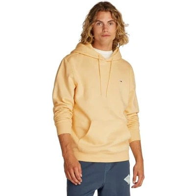 TOMMY JEANS Men’s Regular Fit Flag Fleece Hoodie, Yellow (Custard Cream), S